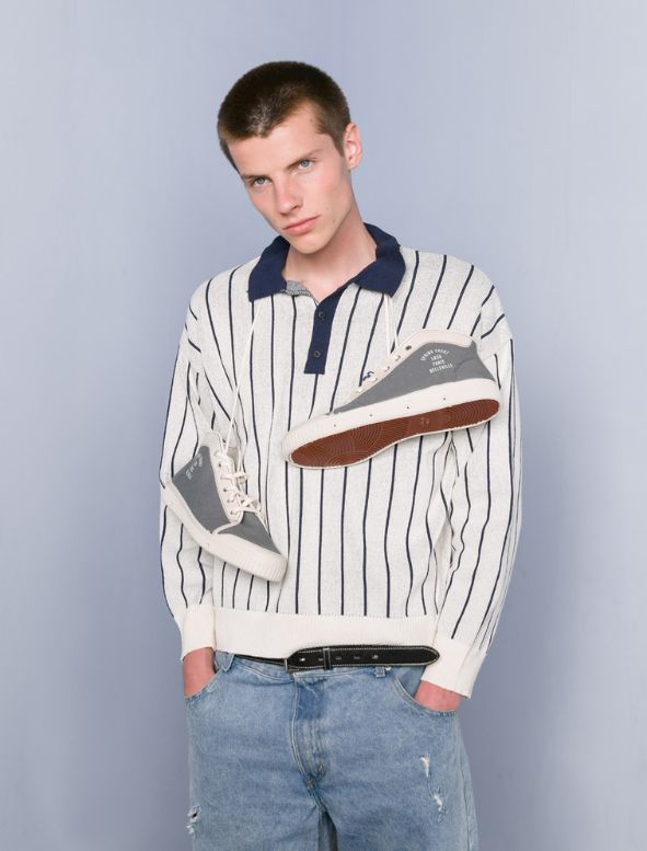 The Teddy draws inspiration from the fifties, with a nod to baseball teams. Its retro-sporty look is defined by a brick-red outsole and a cinched lacing.